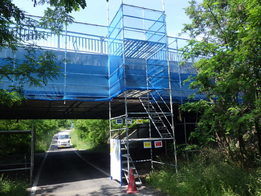 吊り足場設置に伴い小俣橋アンダーパスを通行止めにして作業を行いました