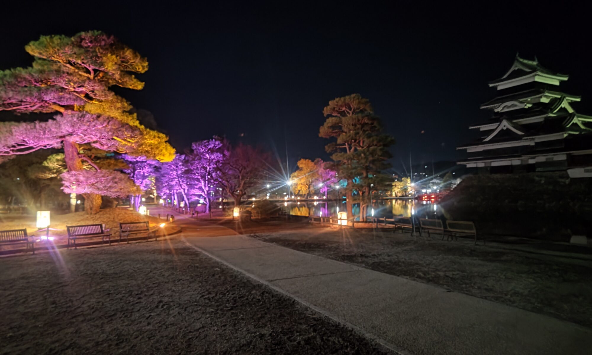 現在は「松本かっちん」の一環で、松本城の天守閣の プロジェクションマッピングがされており、もっときれいになっています。